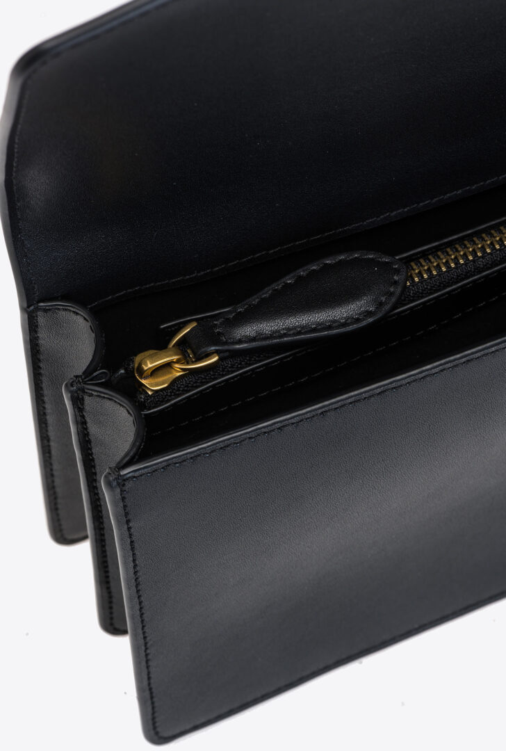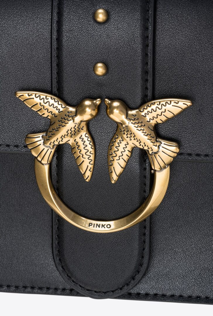 Сумка Classic Love Bag Icon из мягкой шелковистой кожи. Застежка с кожаным ремешком и заклепками дополнена легендарной пряжкой Love Birds Diamond Cut из металла с гальваническим покрытием цвета античного золота. Внутреннее отделение на подкладке из микрофибры включает карман-перегородку на молнии и плоский карман из кожи. Плечевой ремень из кожи украшен ювелирными буквами, образующими фразу PINKO TI AMO.