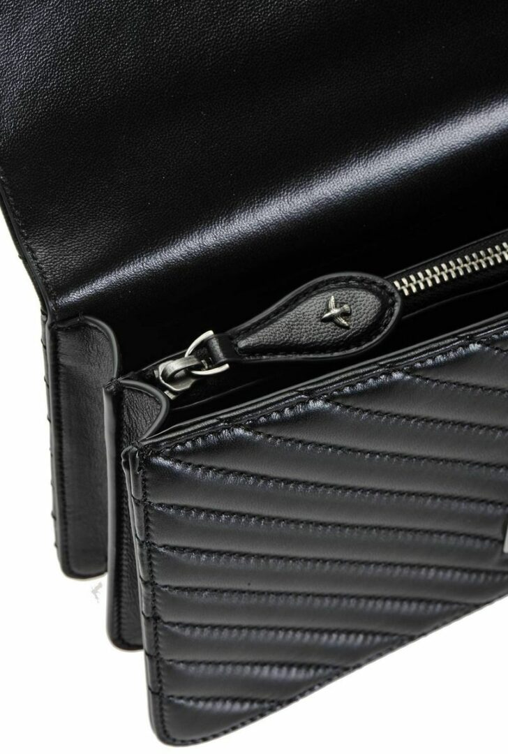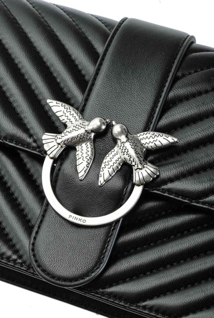 Сумка Love Bag из кожи наппа с диагональной простежкой шеврон. Застежка с ремнем-обманкой из кожи наппа дополнена легендарной металлической пряжкой с ласточками Love Birds. Внутри сумка обшита подкладкой из микрофибры и снабжена карманом-средником на молнии с пуллером, украшенным фирменным декором-заклепкой в виде ласточки, и кожаным карманом на стенке. Плечевой ремень длиной 110 см представляет собой комбинацию классической металлической цепочки с практичным наплечником. Проверь подлинность своей Love Bag при помощи особого NFC-чипа Certilogo.