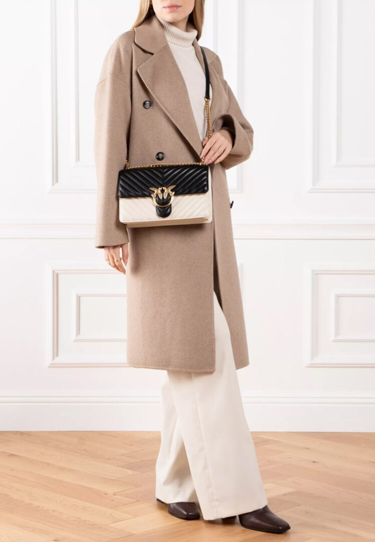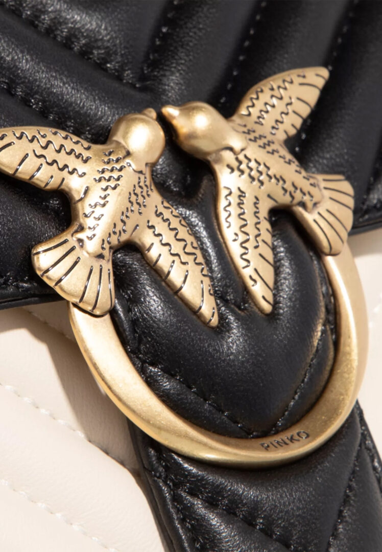 Утончённая сумка от престижного бренда PINKO, окрашенная в классические черно-белые тона, — настоящее воплощение стиля и элегантности. Стеганный шевронный узор на поверхности сумки придает ей особый шарм, а легендарная пряжка Love Birds Diamond Cut является отличительным символом бренда. Изготовленная из высококачественной кожи, эта сумка обязана стать ключевым элементом в гардеробе каждой модницы. К тому же, благодаря плечевому ремню, сочетающему классическую цепь с круглыми звеньями и регулируемый наплечник из кожи, модель обеспечит комфортное ношение и подчеркнёт индивидуальность своей обладательницы.