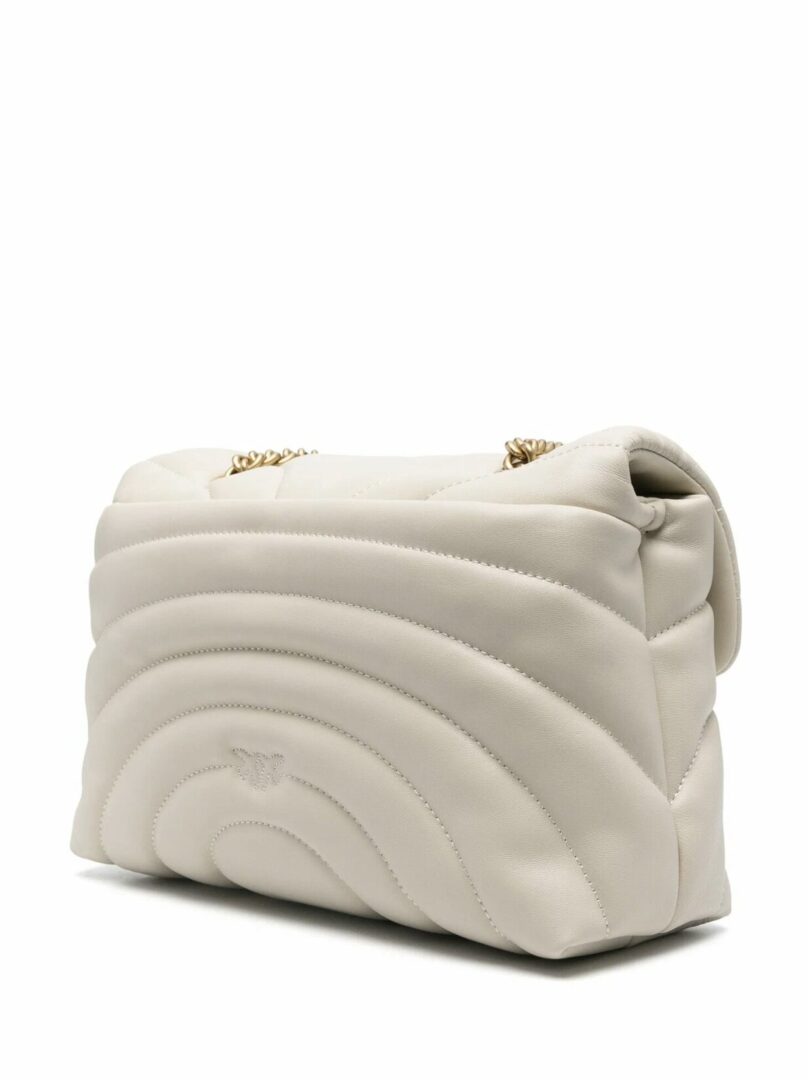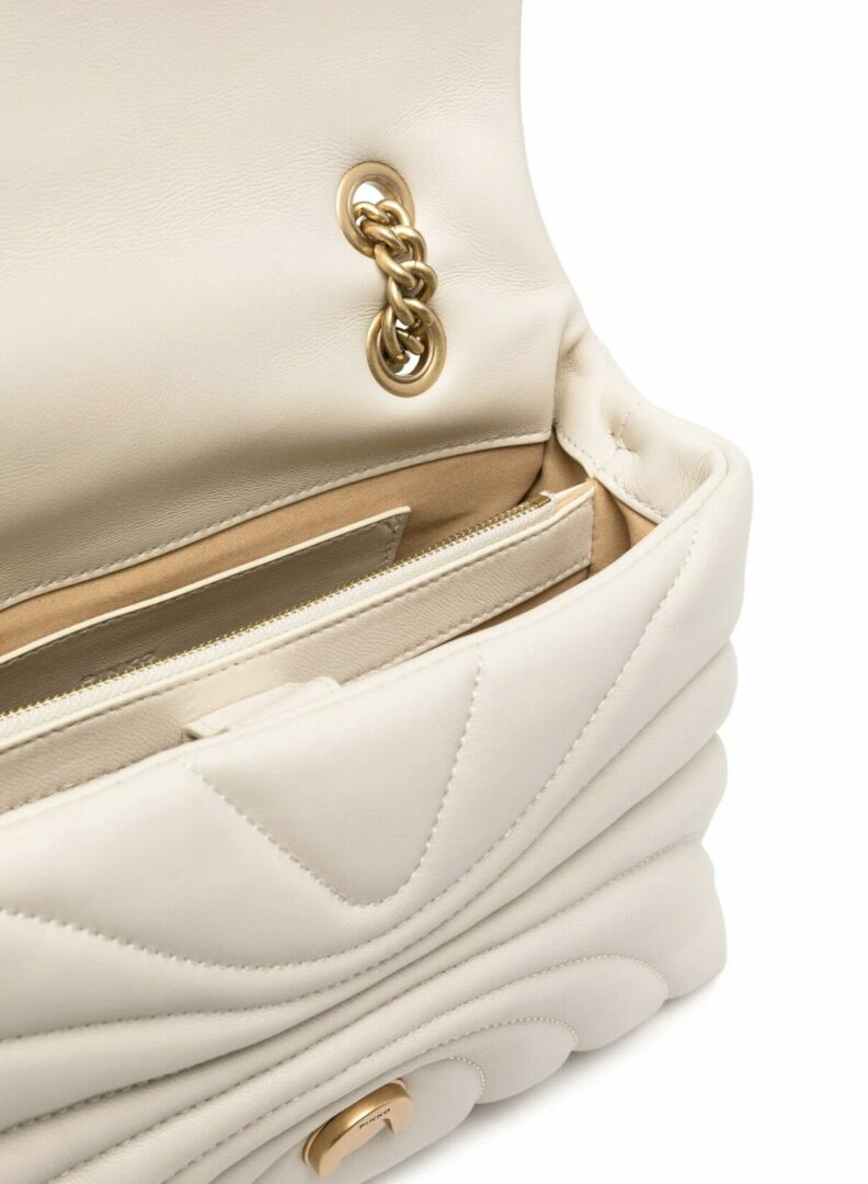 Классическая большая сумка через плечо Love Bag Puff из мягкой стеганой кожи наппа с узором в виде бабочек. Сумка оснащена металлической пряжкой с позолотой и логотипом Love Birds Diamond Cut, а внутри есть карман на молнии и карман-перегородка. Скользящий плечевой ремень, который можно сложить вдвое для ношения через плечо, сочетает в себе классическую металлическую цепочку и практичную накладку из кожи наппа. Активируйте свою сумку PINKO: проверьте подлинность своего изделия и получите персонализированный опыт, отсканировав вышивку Love Birds на задней стороне сумки с помощью смартфона!