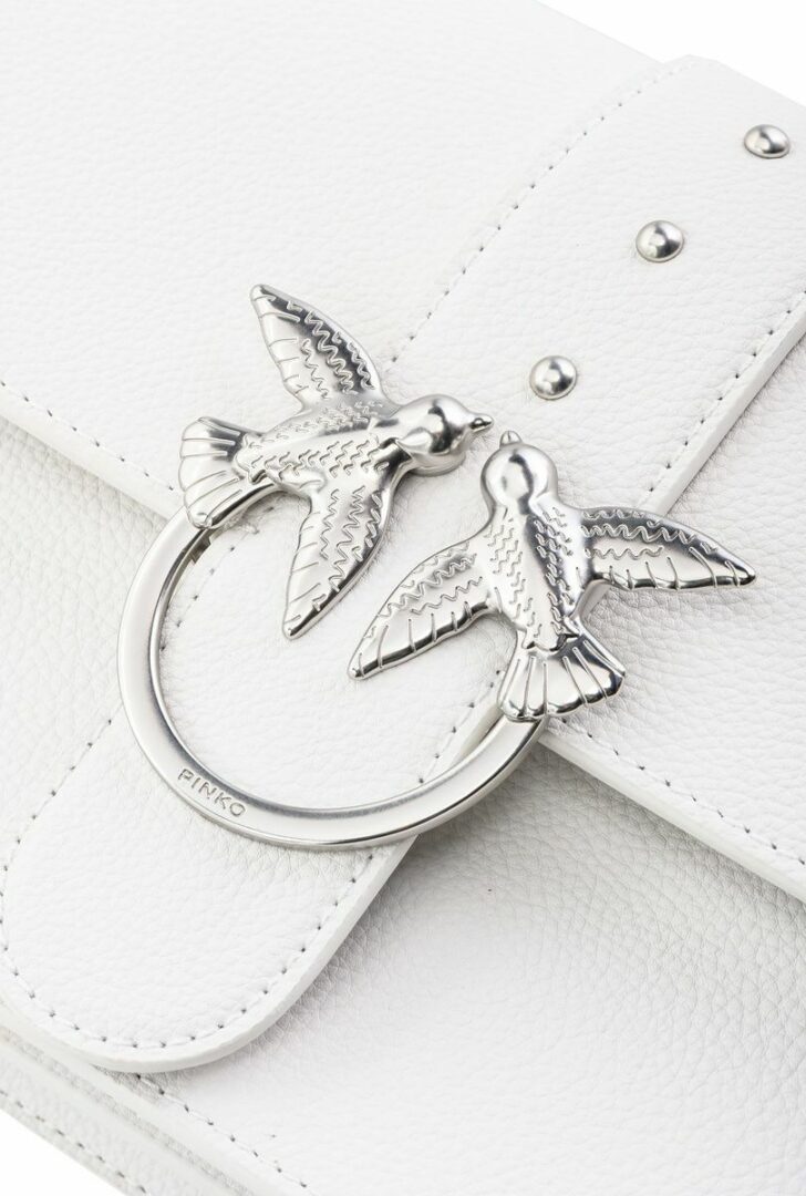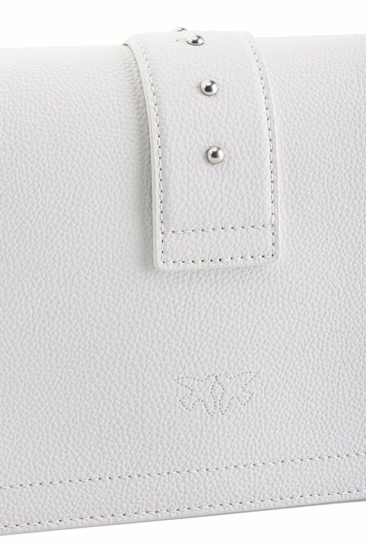 Сумка Love Bag из кожи с разбивкой в барабане. Застежка с кожаным ремнем-обманкой c маленькими металлическими заклепками дополнена легендарной пряжкой из металла с ласточками Love Birds. Внутри сумка обшита подкладкой из микрофибры, снабжена карманом-перегородкой на молнии с подвеской, украшенной фирменным декором-заклепкой в виде ласточки, и кожаным карманом на стенке. Плечевой ремень длиной 110 см представляет собой комбинацию фирменной металлической цепочки PINKO нового типа и практичного кожаного наплечника. Проверьте подлинность своей Love Bag при помощи особого NFC-чипа
