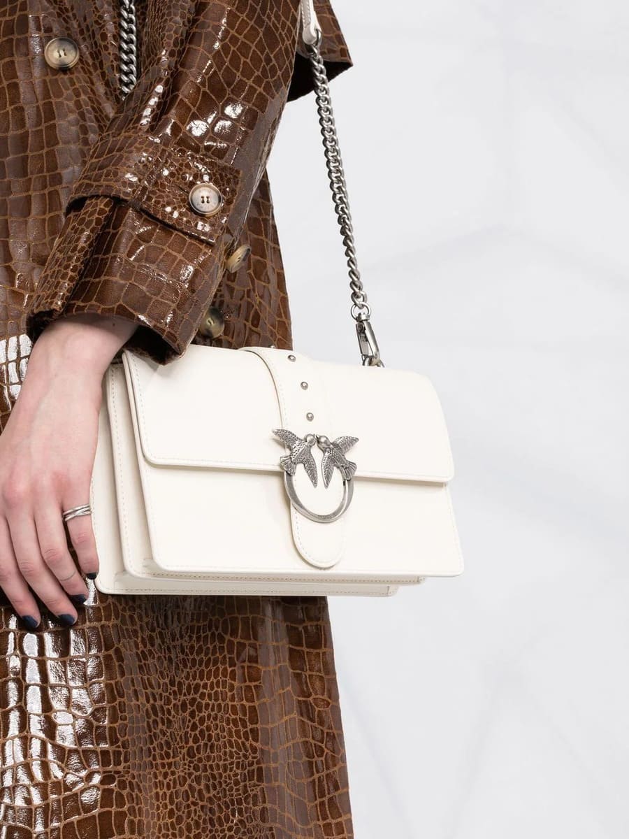 Сумка Classic Love Bag из мягкой шелковистой кожи. Застежка с кожаным ремешком и заклепками украшена легендарной пряжкой Love Birds Diamond Cut из металла. Внутреннее отделение на подкладке из микрофибры дополнено карманом-перегородкой на молнии и плоским карманом из кожи. Съемный плечевой ремень длиной 110 см представляет собой комбинацию классической цепочки с круглыми звеньями и практичного регулируемого наплечника из кожи.