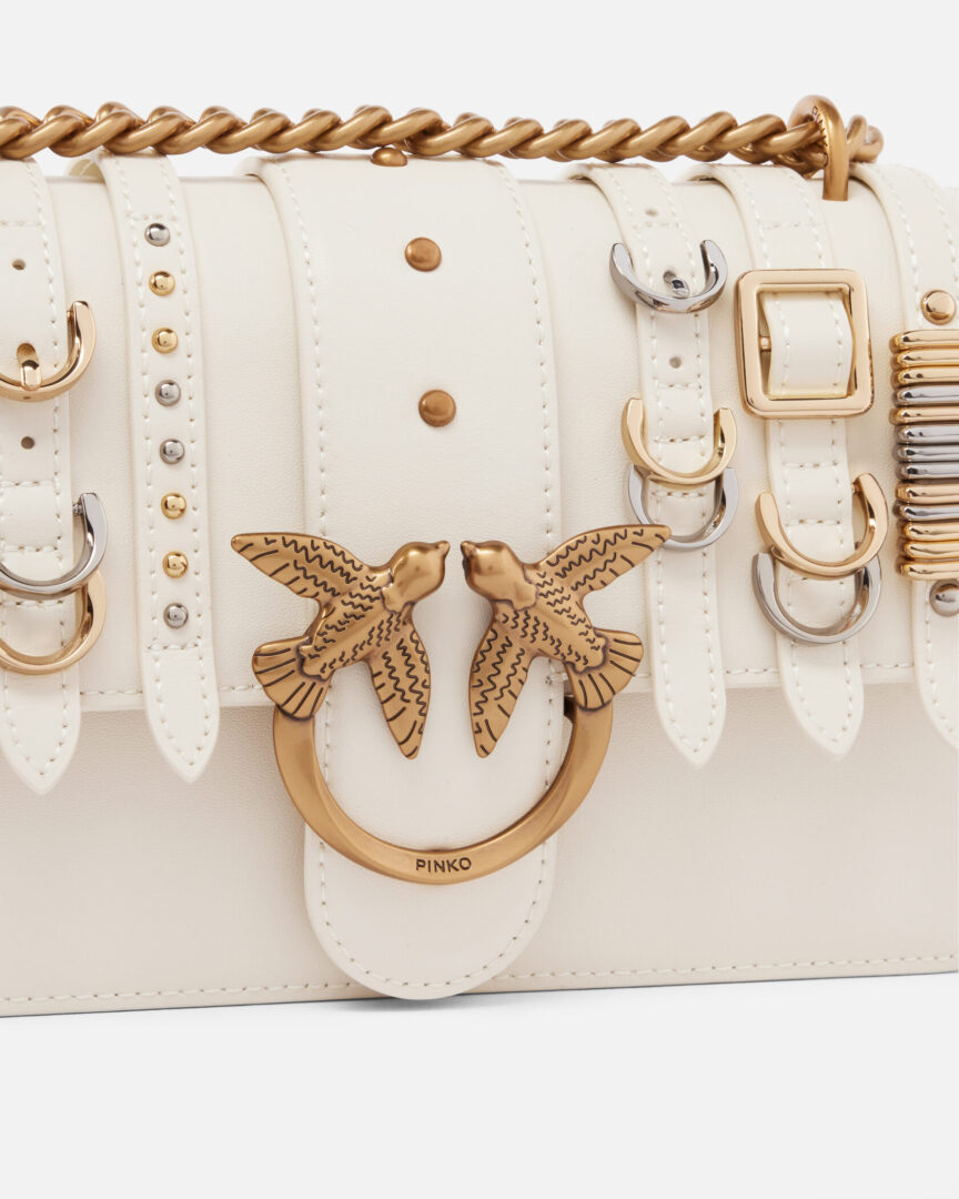 Женская сумка через плечо Love Bag Light, которая отличается легкой и деконструированной структурой, изготовлена из мягкой шелковой кожи ручной работы с деталями ремешков с пряжками и металлическими деталями на клапане спереди.#nbsp;Мини-сумка дополняется металлической пряжкой с культовыми птицами Love Birds Diamond Cut из золотого металла спереди, а скользящий плечевой ремень с кожаным плечевым ремнем может быть дублирован и позволяет носить сумочку даже на плече.#nbsp;Внутренняя часть сумки, облицованная хлопчатобумажной тканью, включает в себя кожаный настенный карман.#nbsp;Эта мини-сумка для любви добавляет оригинальный и отличительный штрих даже к вашим самым основным повседневным нарядам.#nbsp;Активируйте свою сумку PINKO: проверьте подлинность своего продукта и получите доступ к персонализированному опыту, приблизив свой смартфон к вышивке Love Birds, которую вы найдете на задней части сумки!