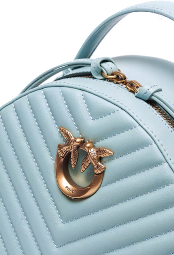 Рюкзак из гладкой стеганой кожи с мотивом в елочку, дополненный пряжкой Love Birds Diamond Cut спереди. Ручка сверху и регулируемые лямки из кожи. Застежка-молния с двумя бегунками.