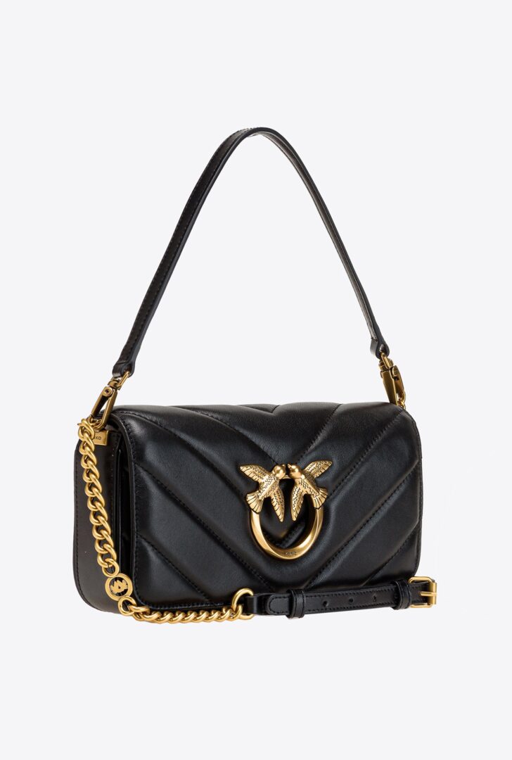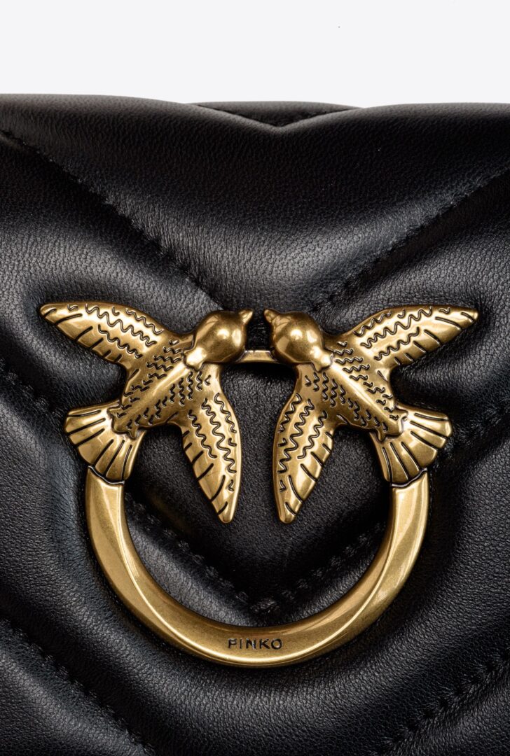 Удлиненная сумка Mini Love Bag Click в форме багета из стеганой кожи наппа с крупным шевронным узором. Потайная застежка на кнопки украшена культовой металлической пряжкой Love Birds Diamond Cut с эффектом выреза. Внутренняя отделка из микрозамши. В комплект входит плечевой ремень, сочетающий в себе металлическую цепочку с круглыми звеньями, украшенную Love Birds, и практичную кожаную подкладку. Сумка также оснащена съемной кожаной ручкой. Активируйте свою сумку PINKO: проверьте подлинность вашего продукта и получите персонализированный опыт, отсканировав вышивку Love Birds на задней стороне сумки с помощью смартфона!