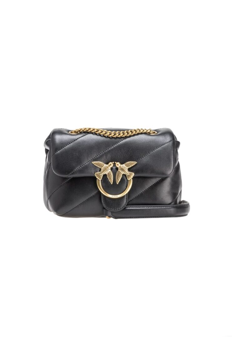 Сумка Mini Love Bag Click из стеганой кожи наппа с крупным шевронным узором. Потайная застежка на кнопки украшена культовой металлической пряжкой Love Birds Diamond Cut с гальваническим покрытием под старинное золото и эффектом выреза. Аксессуар имеет внутреннюю подкладку из микрозамши, центральный разделительный карман на молнии и кожаный накладной карман. Плечевой ремень сочетает в себе классическую цепочку с круглыми звеньями и практичную регулируемую кожаную подкладку. Активируйте свою сумку PINKO: проверьте подлинность вашего продукта и получите персонализированный опыт, отсканировав вышивку Love Birds на задней стороне сумки с помощью смартфона!