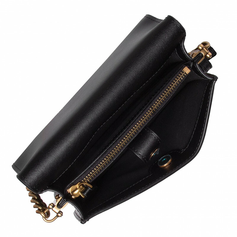 Мини-сумка Love Bag Click из мягкой шелковистой кожи. Потайная магнитная застежка украшена легендарной пряжкой Love Birds Diamond Cut из металла с гравировкой. Внутреннее отделение на подкладке из микрофибры дополнено карманом-перегородкой на молнии и плоским карманом из кожи. Плечевой ремень длиной 110 см представляет собой комбинацию металлической цепочки с круглыми звеньями и практичного наплечника из кожи.