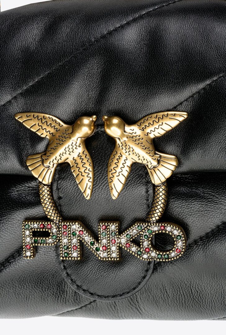 Сумка Mini Love Bag Puff из мягкой кожи наппа с крупной косой простежкой. Застежка дополнена легендарной металлической пряжкой с гальваническим покрытием «античное золото», со стразами, ласточками Love Birds и логотипом PINKO. Внутри сумка обшита микрофиброй, разделена карманом-перегородкой на молнии и снабжена карманом на стенке. Плечевой ремень длиной 110 см представляет собой комбинацию классической металлической цепочки с круглыми звеньями и практичного наплечника из кожи наппа. Проверь подлинность своей Love Bag при помощи особого NFC-чипа.