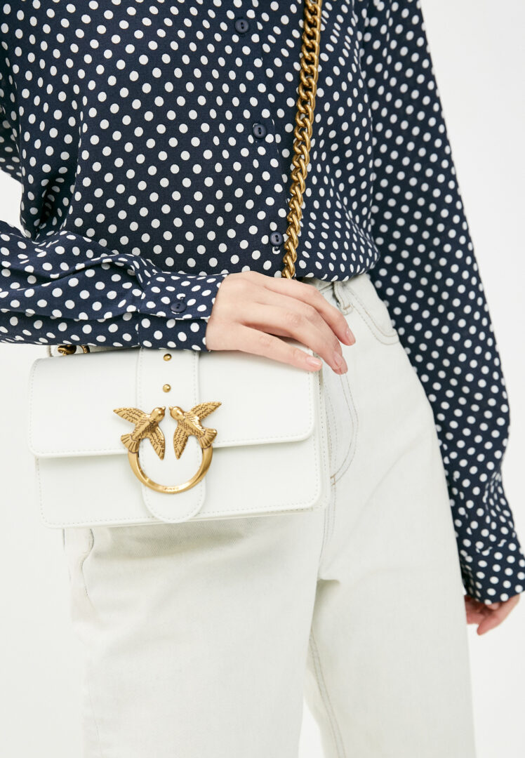 Мини сумка через плечо Love Bag Puff из мягкой стеганой кожи наппа с узором в виде бабочек. Сумка оснащена металлической пряжкой с позолотой и логотипом Love Birds Diamond Cut, а внутри есть карман на молнии и карман-перегородка. Скользящий плечевой ремень, который можно сложить вдвое для ношения через плечо, сочетает в себе классическую металлическую цепочку и практичную накладку из кожи наппа. Активируйте свою сумку PINKO: проверьте подлинность своего изделия и получите персонализированный опыт, отсканировав вышивку Love Birds на задней стороне сумки с помощью смартфона!