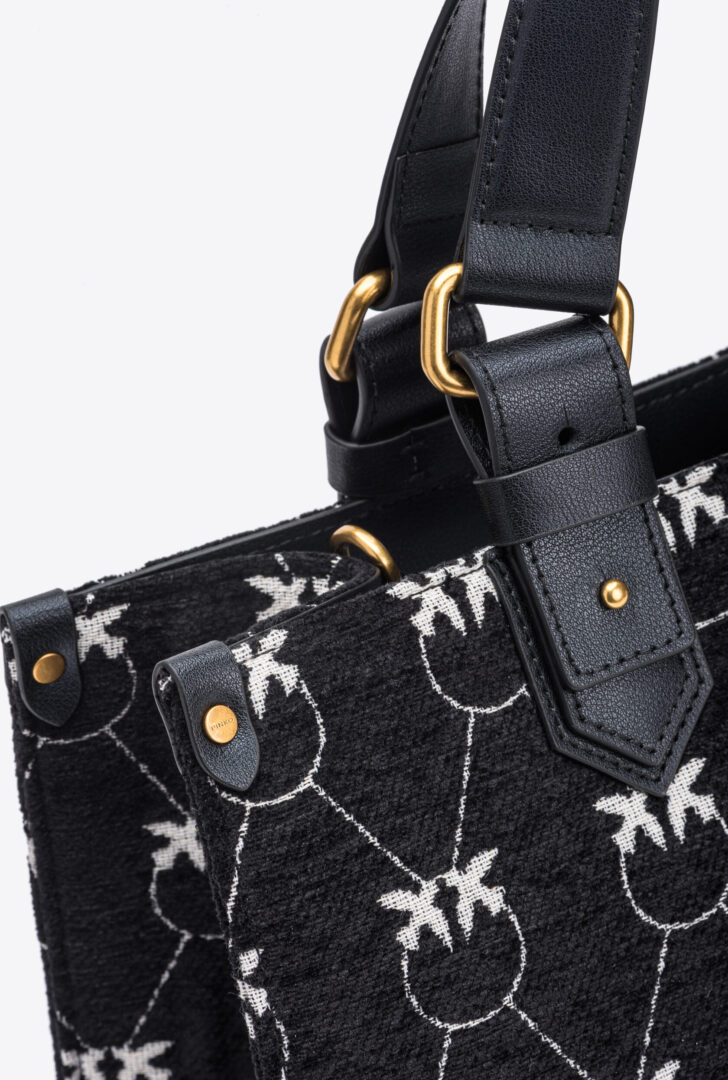 Сумка-шоппер прямоугольного силуэта изготовлена из синели с жаккардовым узором Love Birds Monogram контрастного цвета. Фирменная эмблема Love Birds из металла с гальваническим покрытием цвета античного золота спереди вносит в дизайн фирменный штрих. Подкладка из микрофибры. Две ручки сверху и съемный регулируемый плечевой ремень из кожи. Активируй свою сумку PINKO: поднеси смартфон к вышитому на задней стенке логотипу Love Birds, чтобы проверить подлинность изделия и получить доступ к персонализированным функциям!